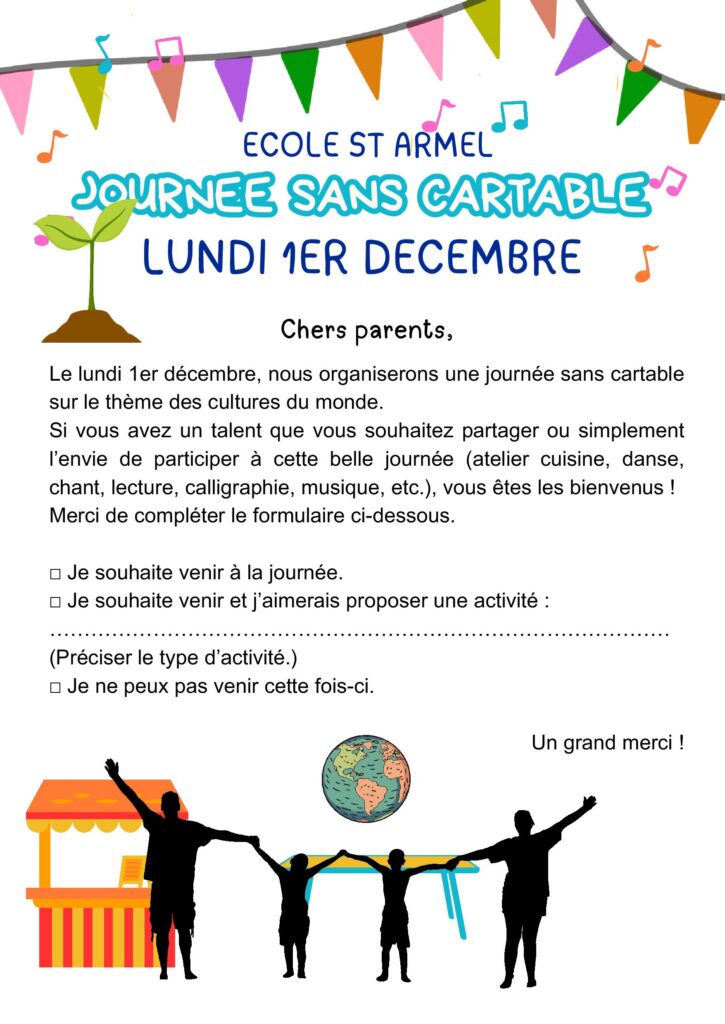 Journée sans cartable lundi 1er décembre